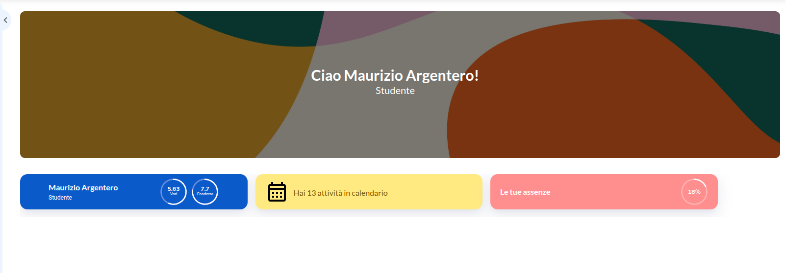 La dashboard è la pagina iniziale del registro scolastico, che compare a seguito dell’accesso da parte dello studente. La sua finalità è quella di dare una visione globale sulla situazione scolastica, oltre a contenere link rapidi alle informazioni più importanti.